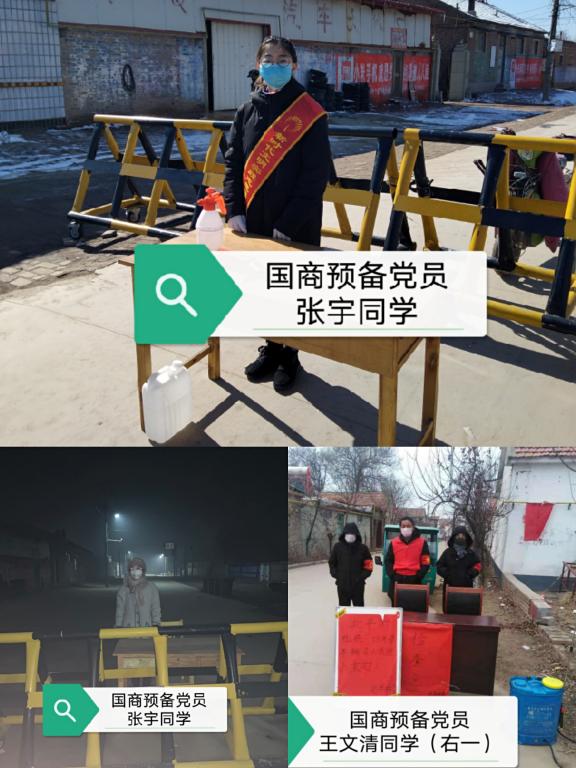 疫情就是命令,防控就是责任,党员就是先锋!预备党员2017级商务英语一班张宇同学,2017级商务管理三班王文清同学,虽然处在专升本考试考前复习的关键阶段,但她们纷纷选择了在疫情面前冲锋在前,利用春节在家期间,积极向亲朋好友宣传疫情防控知识,提前电话劝退打算走亲访友的亲戚朋友,主动报名参加村口劝返点和检查站志愿服务,为村民筑牢防疫安全墙。