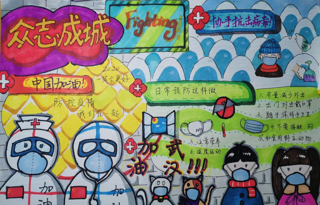 本次活动共收到同学们精心设计的作品100余件,从中精选了优秀作品20余件,征集到的作品紧扣主题,构思新颖,形式多样,寓意深刻,在宣传防疫知识的同时,将战“疫”期间的感人场面转化成了鲜活生动的画作,表达对抗疫一线的英雄们的敬意与祝福,展现了在疫情面前全国上下同舟共济、众志成城、支援武汉、战胜疫情的决心和信心。
