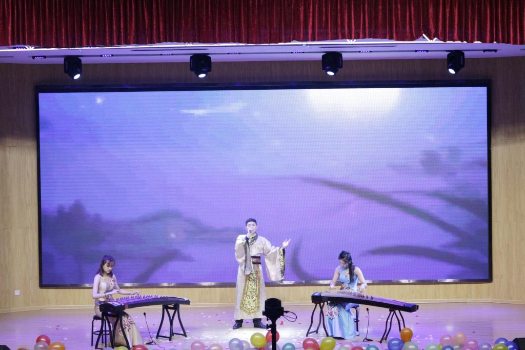 第二篇章扬帆起航潍职梦,乘风破浪创辉煌。该院教师带来的舞蹈《舞动的精灵》,那曼妙的舞姿,动感的舞步展现了新时代人民教师的青春活力。童声联唱《童趣》是该院教师子女带来的节目,小朋友的精彩表演引得在场观众的阵阵掌声。黄梅戏《女驸马》让观众领略了传统戏曲的魅力。英文歌曲《Something Like This》展现了国商专业特色和学生的专业水平,晚会再次达到了一个高潮。