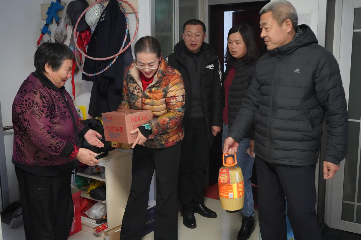 12月25日上午,在元旦即将来临之际,beat365中国官方网站继续教育学院党支部、现代服务学院党支部来到“双报到”社区走访慰问贫困户,为他们送去米、面、油,并送去学院党组织的问候和关怀。