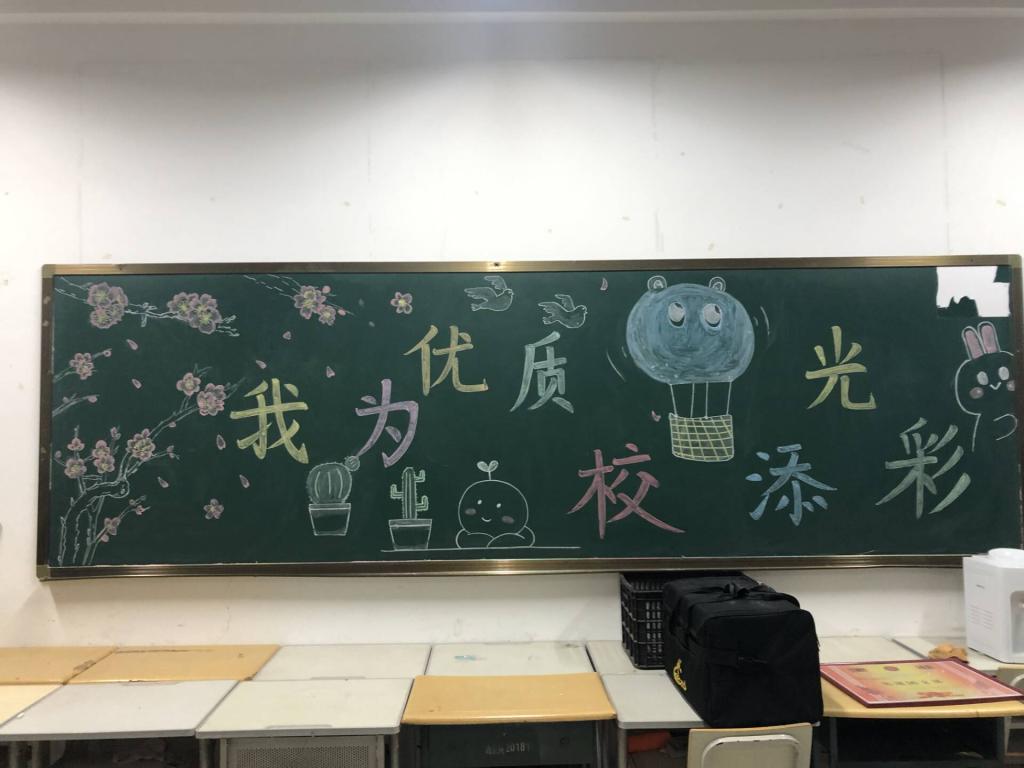 各班级黑板报主题紧扣“我为优质校园添光彩”,用颜色传播爱校、荣校的精神,各班级对黑板报进行了精心设计,板报设计主题突出、设计新颖、形式多样,同学们用生动准确的文字、栩栩如生的画面展现了对学院的热爱,展现了汽车学子积极向上的精神面貌。