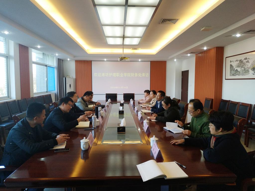 11月14日,潍坊护理职业学院规划财务处处长宋玉一行5人来beat365进行调研交流,财务处负责同志及相关科室负责人参加了座谈和交流。