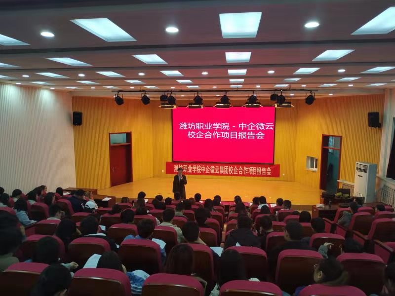 11月7日下午,文化创意学院在奎文校区大学生创业中心一楼路演厅举办了中企微云校企合作项目报告会。文化创意学院主要负责同志和中企微云(北京)科技有限公司华北市场总监等参加报告会。文化创意学院2018级设计类专业180余名学生参加。