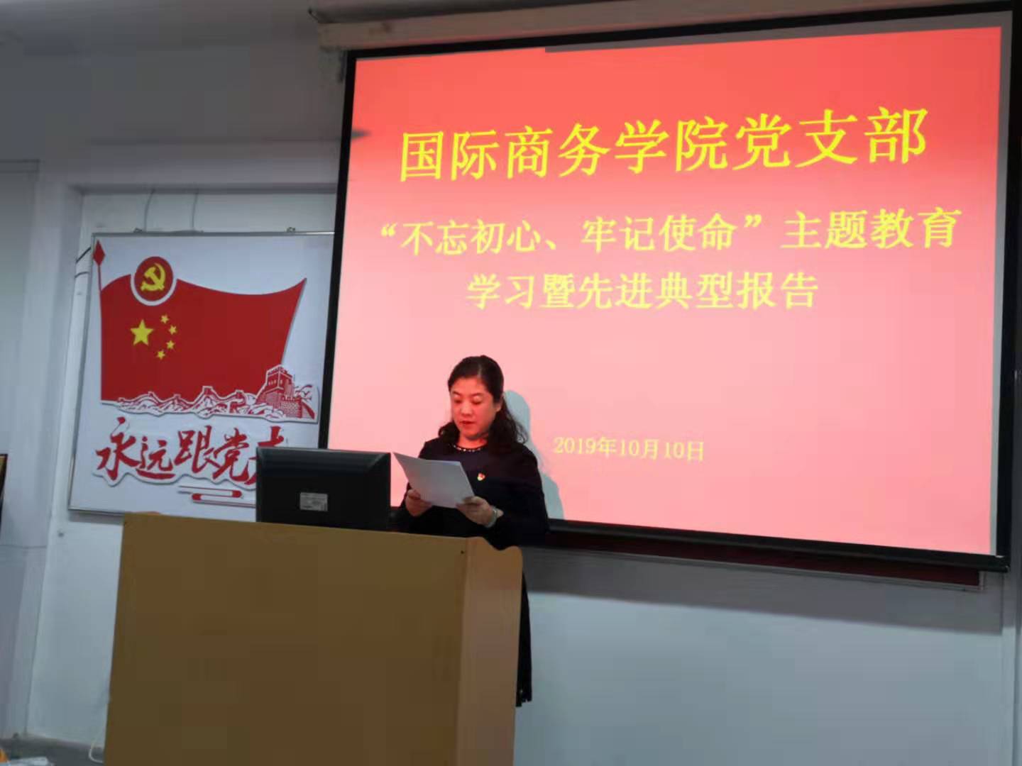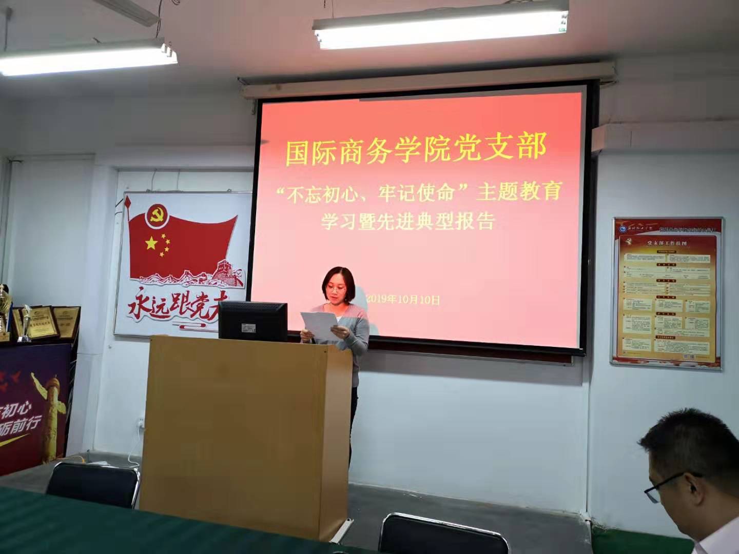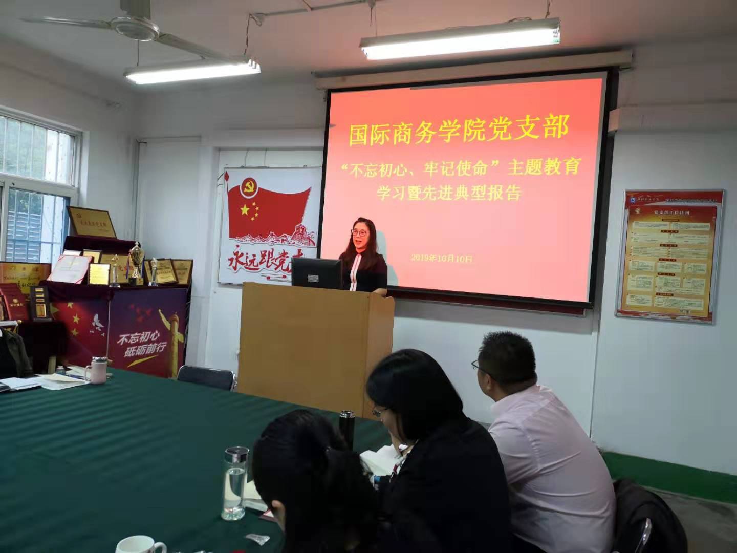 国际商务学院党支部组织开展“不忘初心、牢记使命”主题教育学习暨先进典型报告