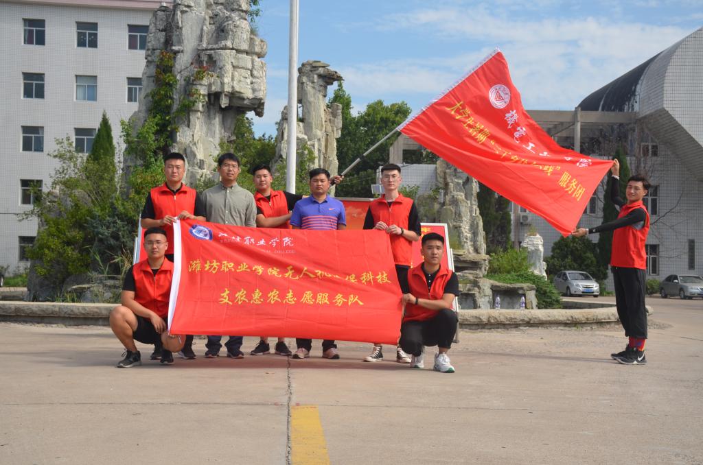 随着无人机技术的不断成熟,学院2018年开设无人机专业并与潍坊锐翔航空科技有限公司共建了200余万的无人机实训室,实践团队通过选拔2018级无人机专业技能大赛优秀学生、聘请企业顾问、社会实践优秀指导老师等10人组成了专业技术精湛、飞行技术娴熟、全程化技术保障的无人机植保科技支农惠农宣传社会实践团队。
