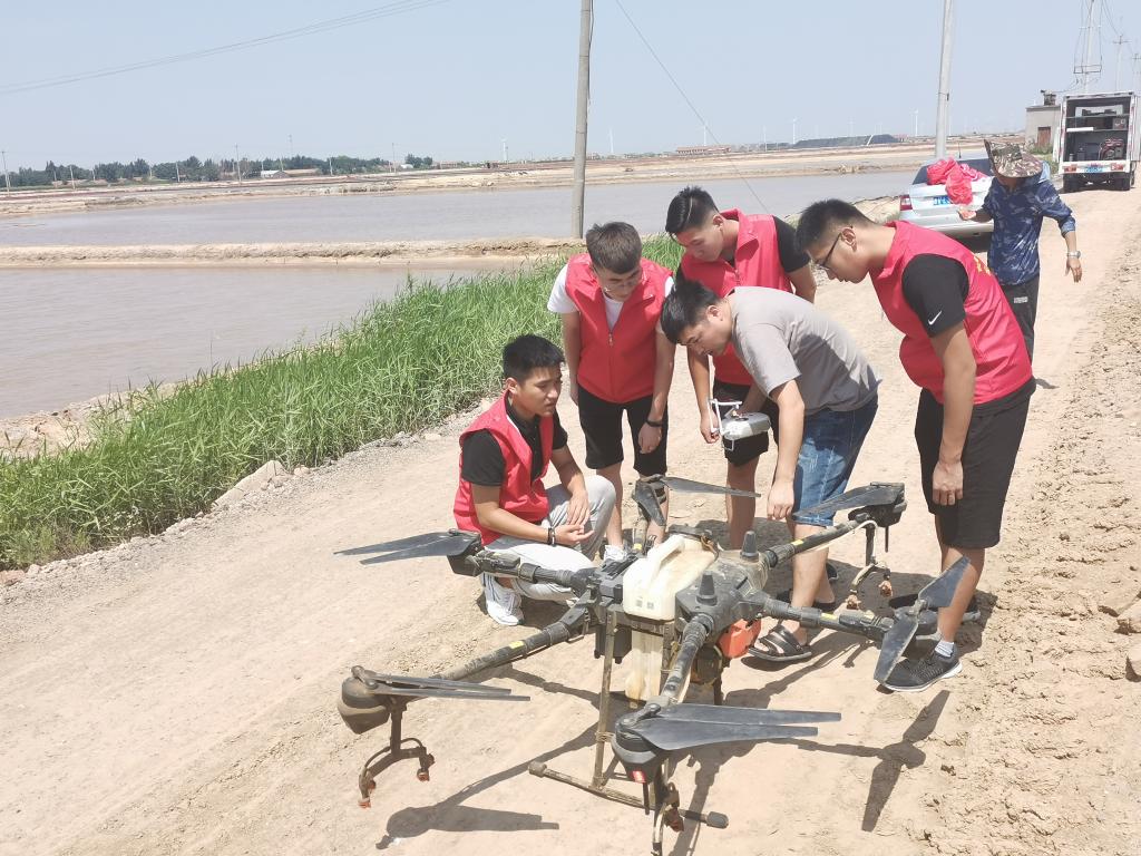 无人机技术最终还是要落于实践,实践团队学生在田间地头通过地块测量、无人机组装、农药配比、航迹规划、充电、无人机飞行、飞行后总结等实际任务的实施,将所学的理论知识转化为实践,又在实践中提升自身技能。(辛海明供稿)
