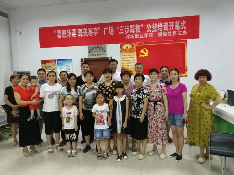 7月23日晚,由通识教育中心、化学工程学院、科技处、资产管理处、纪委监察审计处五支部“双报到”工作小组与寒亭街道镜湖社区共同举办的“喜迎华诞 舞美寒亭”广场健身“三步踩舞”公益培训开幕式在镜湖社区举行,“双报到”工作小组成员、镜湖社区领导、社区居民参加了开幕式并进行了第一场培训。