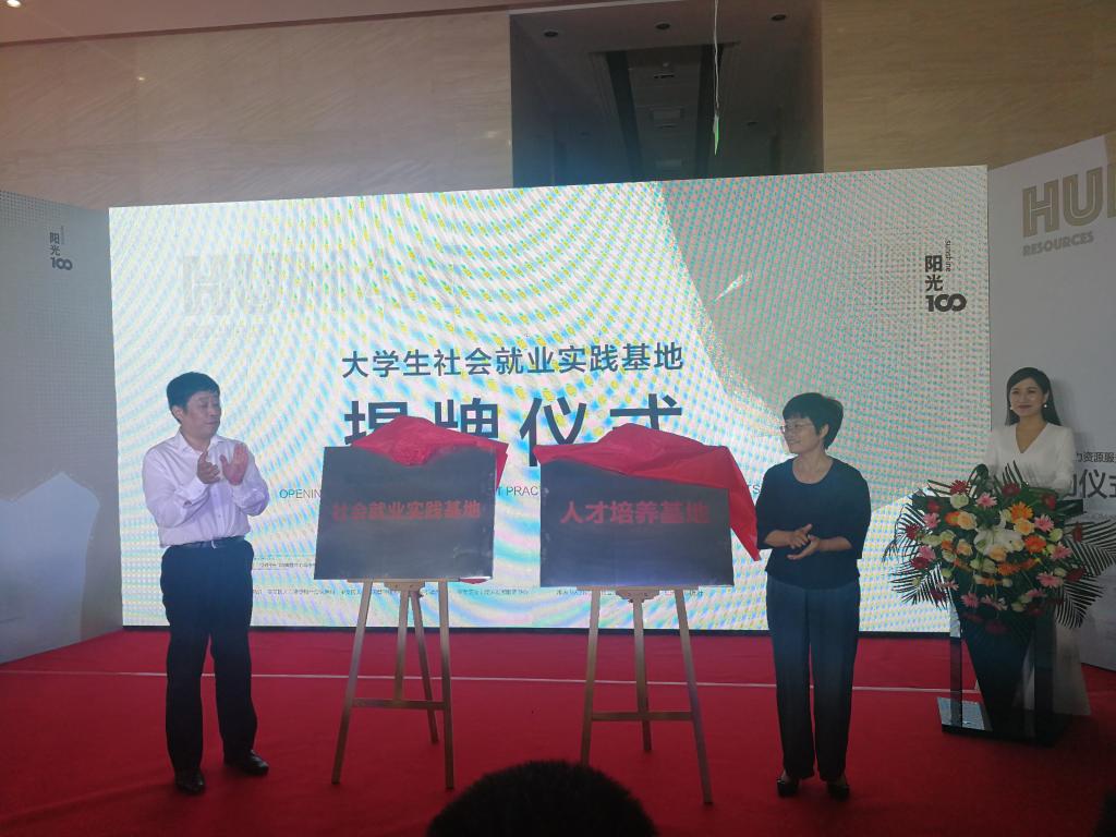 7月16日,经营管理学院“社会就业实践基地”挂牌仪式在潍坊阳光100凤凰社12#楼举行,潍坊市人社局四级调研员王瑞亮、共青团潍坊市委副书记张新明、奎文区政府副区长王秀刚、beat365中国官方网站经营管理学院负责同志,半岛智慧人力资源服务产业园运营总经理马涛参加了仪式活动。