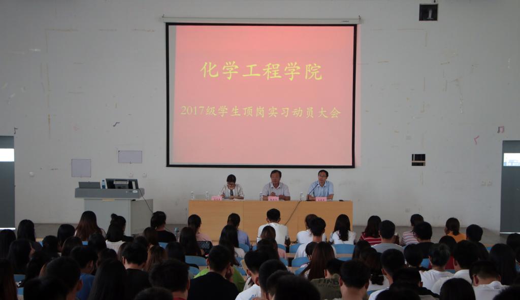 7月8日上午,化学工程学院在惠泽1号楼B117召开2017级学生顶岗实习动员大会,化学工程学院主要负责同志、班主任、指导教师以及2017级全体同学参加了动员大会。