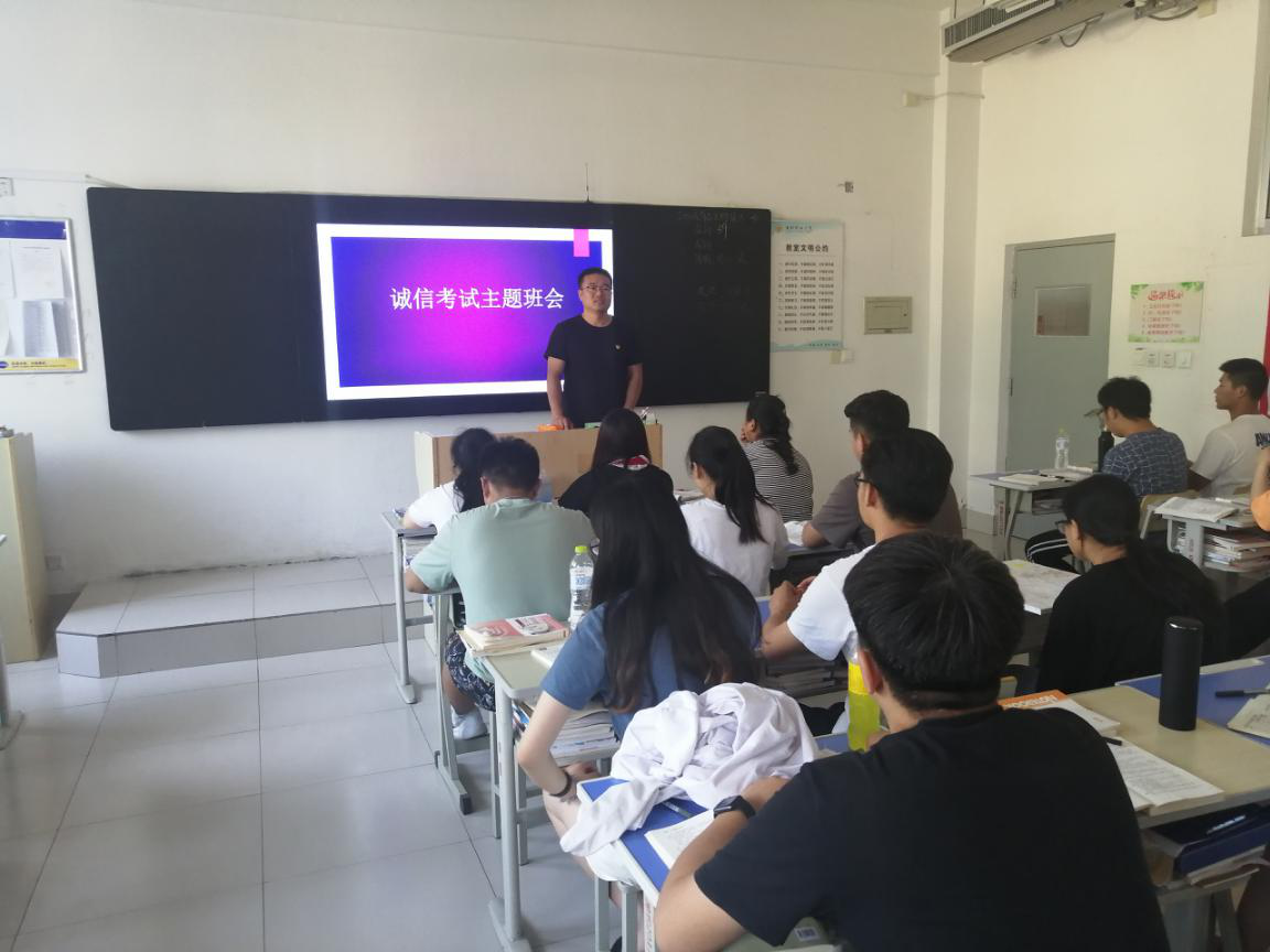 为树立良好的考风,增强学生的诚信意识,严肃考试纪律,7月3日,食品药品学院开展了“诚信考试”主题班会活动。
