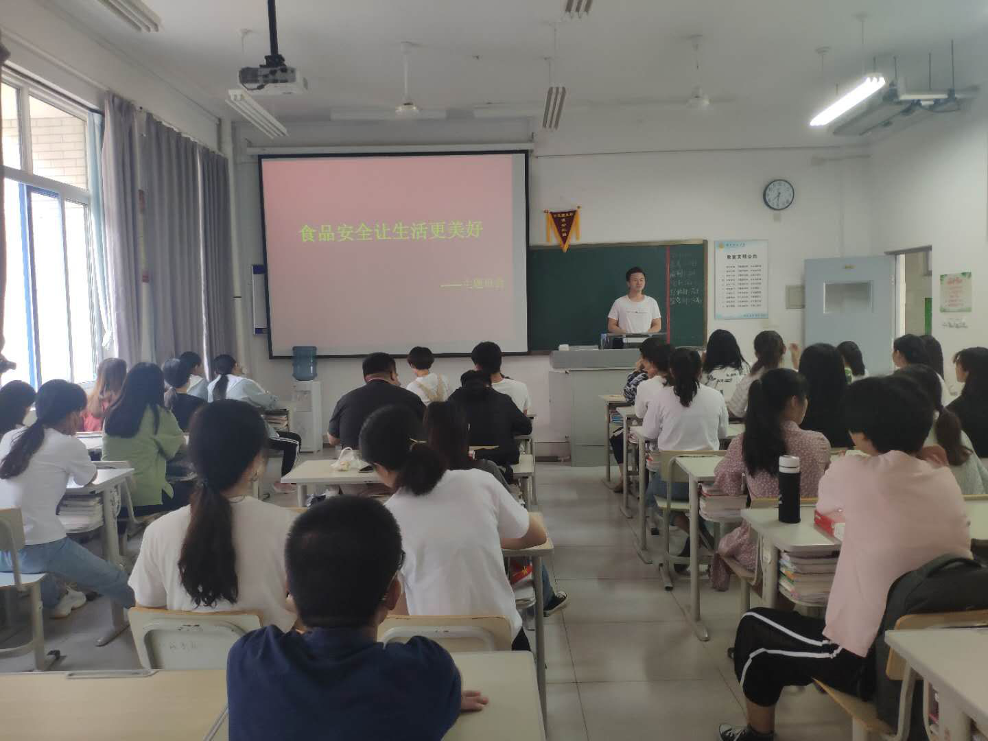 活动中,各班级通过召开主题班会、交流讨论假冒伪劣食品辨别、播放《如何选购保健食品》、《食品保健食品防骗指南》视频等形式让同学们了解食品安全知识,促进树立健康饮食理念,提升消费信心,提高食品安全意识和科学应对风险的能力。活动现场气氛热烈,同学们纷纷表示要加入食品安全宣传队伍中来。