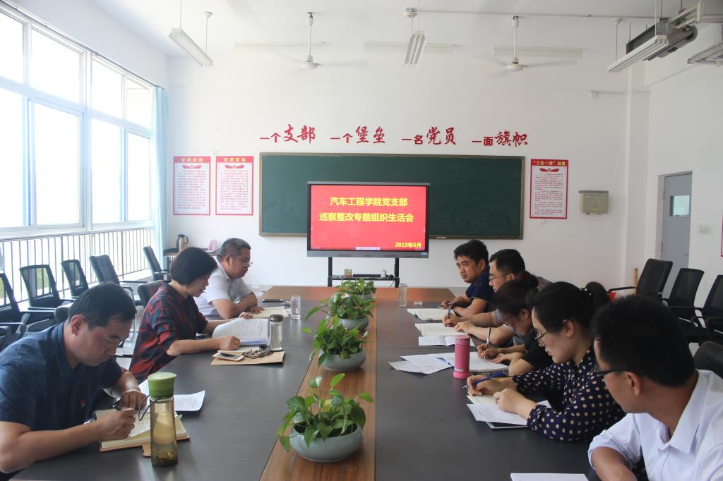 为全面深入推进市委巡察反馈意见整改落实,6月12日下午,汽车工程学院党支部召开了巡察整改主题组织生活会,支部班子成员及各党小组代表参加了会议。