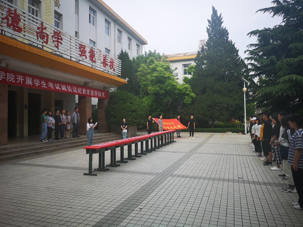 5月 14日下午,国际商务学院在奎文校区1号楼广场开展诚信考试主题团课,组织学生现场在考试诚信法纪教育启动仪式上承诺签字;各班统一召开一次诚信考试主题班会。班主任提前精心准备,与每一个学生签订诚信考试承诺书;各辅导员、班主任们通过各种渠道与家长联系,使家长充分认识到诚信考试的教育价值、考试作弊的严重后果,自觉教育引导孩子诚信应考;加强学生日常管理,严格请假制度,严防在校学生出现参与替考、团伙作弊等违法违规行为。