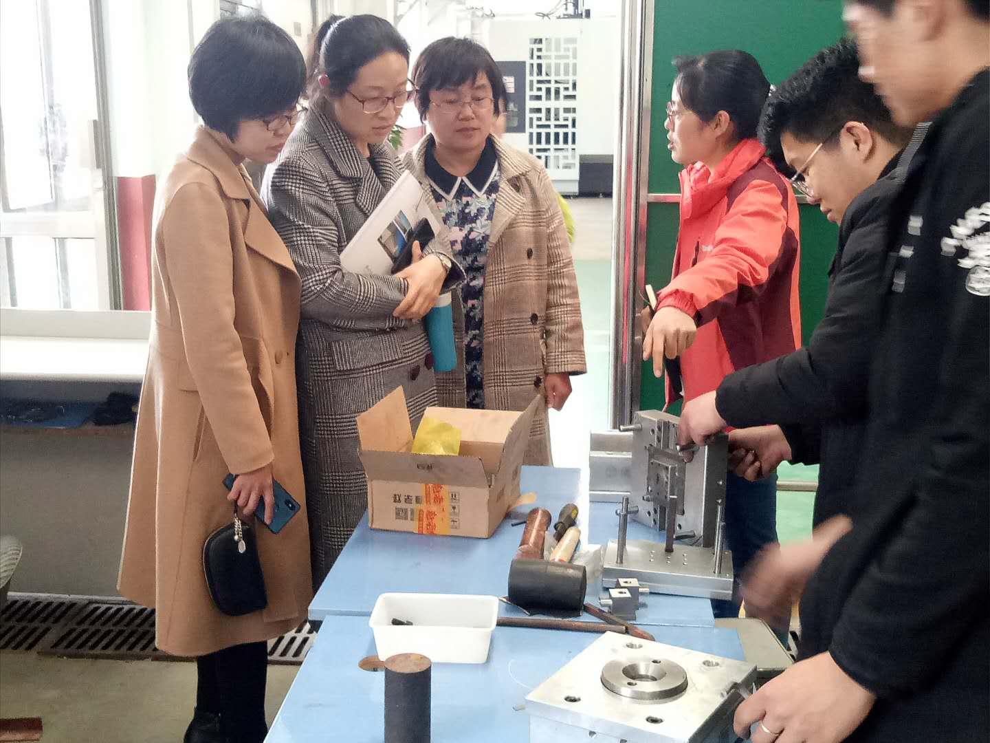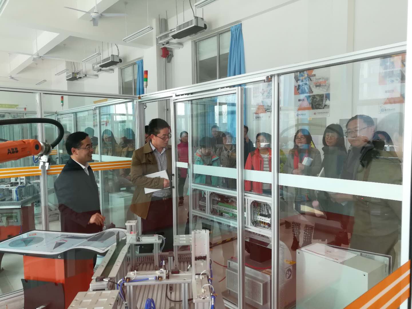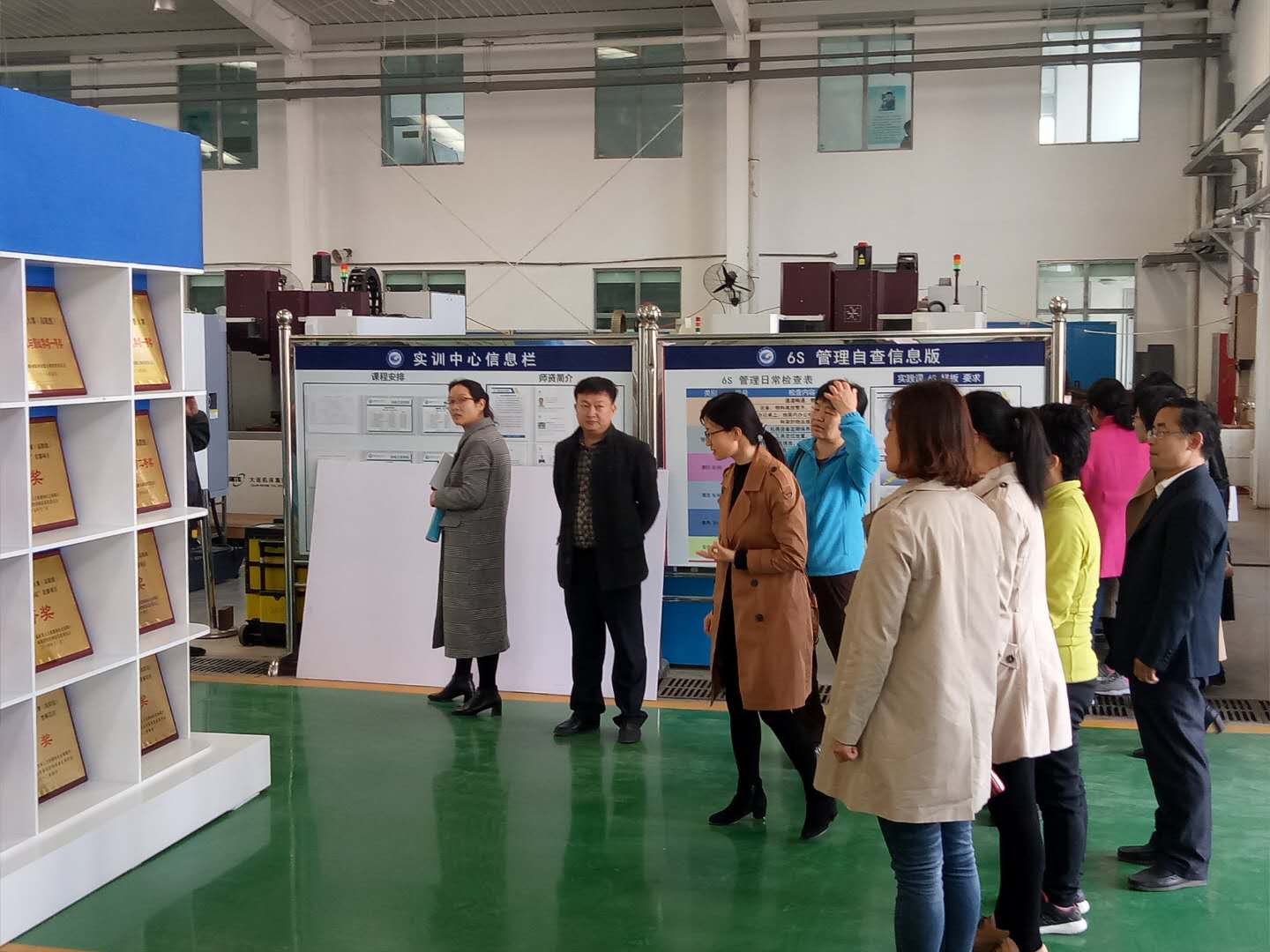 在工业机器人实训室,老师给老师们现场演示了机器人操作,无人机技术实训室,那一台台形态各异的无人机,可实现虚拟仿真的电脑设备,用于试飞安全防护网,酷炫的实训室陈列让老师们为之惊叹,随后又参观了单片机实训室、柔性生产实训室。在金泽2号楼机电工程学院实训车间。老师们查看了数控铣和加工中心实训区、数控车实训区、电子产品智能制造实训室、逆向工程实训室、SMT实训室、焊工实训区、机加工实训区。