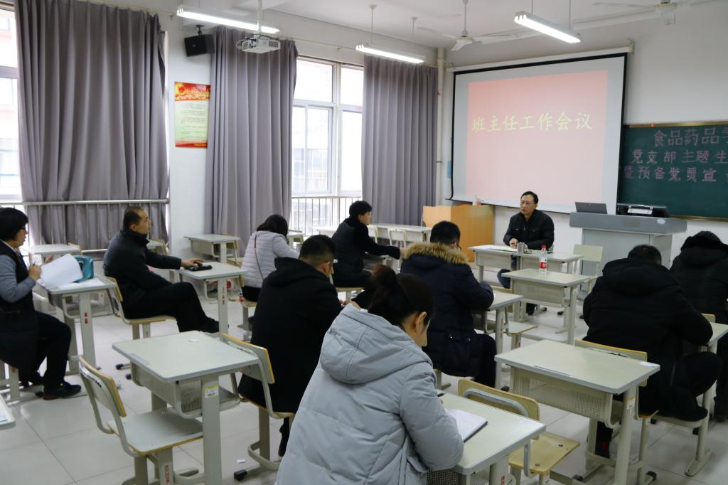 1月20日食品药品学院在惠泽1号楼B区105教室召开全体辅导员、班主任会议,安排部署假期的相关工作,食品药品学院分管学生工作的副院长和全体辅导员、班主任老师参加了会议。