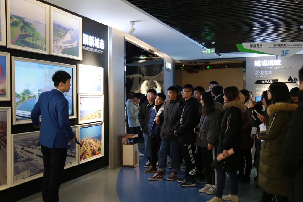 启动仪式结束后,同学们集体参观了滨海城市艺术中心。一楼的城市印象厅在古朴的氛围中展示了滨海的文化生命与传承,二楼的城市规划厅处处彰显未来滨海的开放、活力与国际化风貌,三楼的规划体验厅则展现了宏远的规划让城市更美好的具体内涵。参观活动中,同学们惊叹不已,对魅力滨海有了全新的认识。