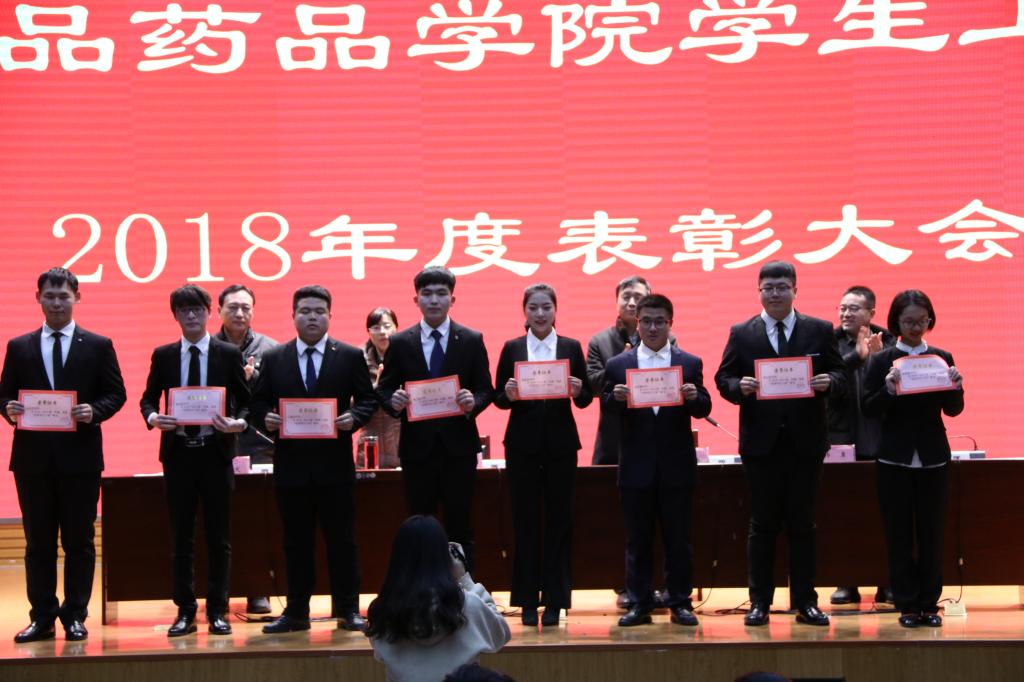 会上,首先由分管教学工作副院长宣读了表彰文件。随后,大会举行了隆重的颁奖仪式,与会领导向获奖学生代表颁发了奖状和流动红旗。学院院长在表彰会上讲话,对2018年度食品药品学院学生工作取得的各项成效表示肯定和满意,对广大同学秉承优良学风,不断挑战自我而取得的一系列成绩感到骄傲和自豪,对辛勤培育同学们的老师,以及为学生成长成才默默付出的亲人朋友们表达了敬意和感谢。对同学们提出了要求和希望,希望同学们能够继续发扬成绩,树立“看齐意识”,以获奖的先进典型为榜样,比学赶超,努力成为可堪大用、能负重担的栋梁之才。