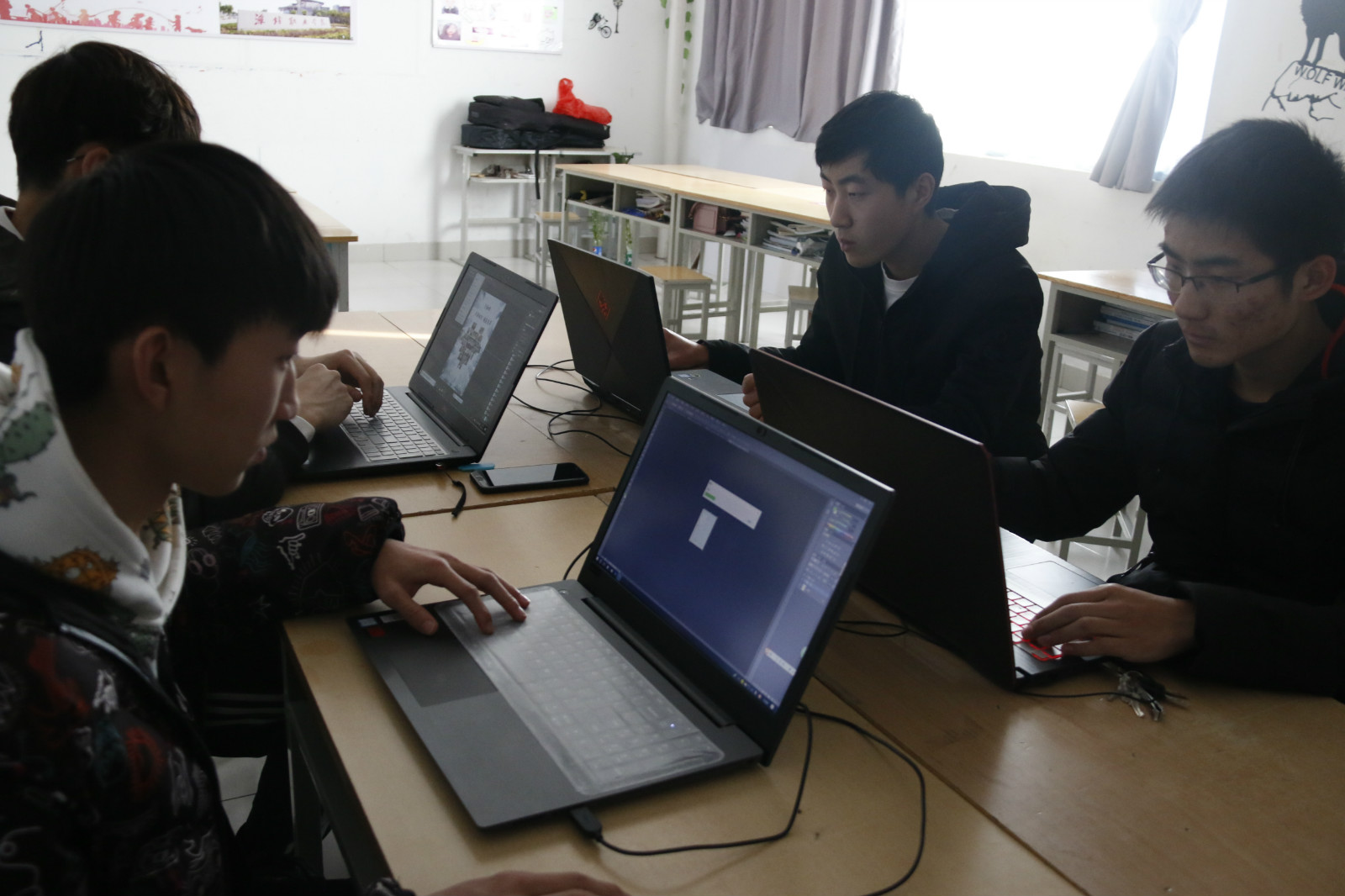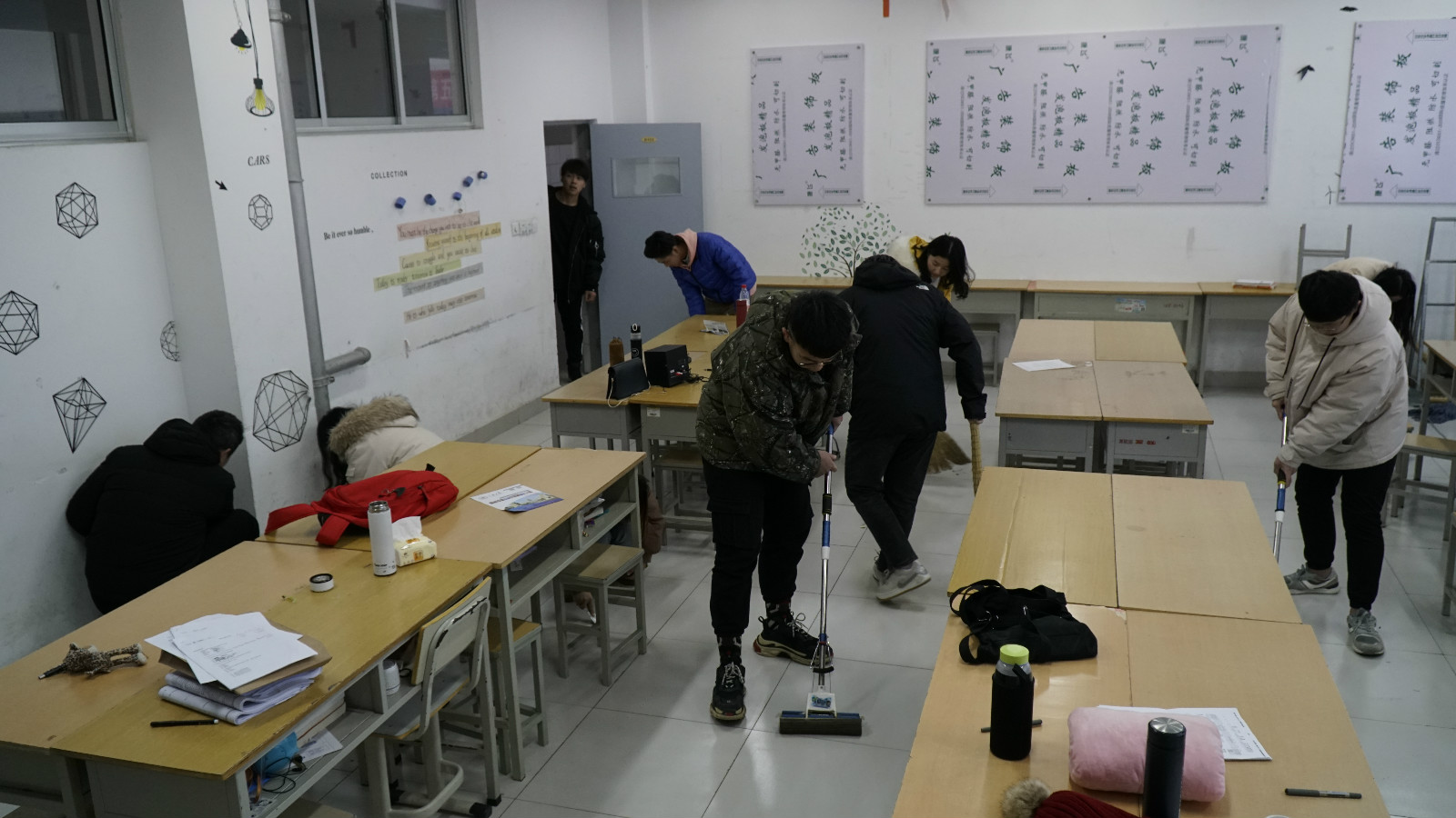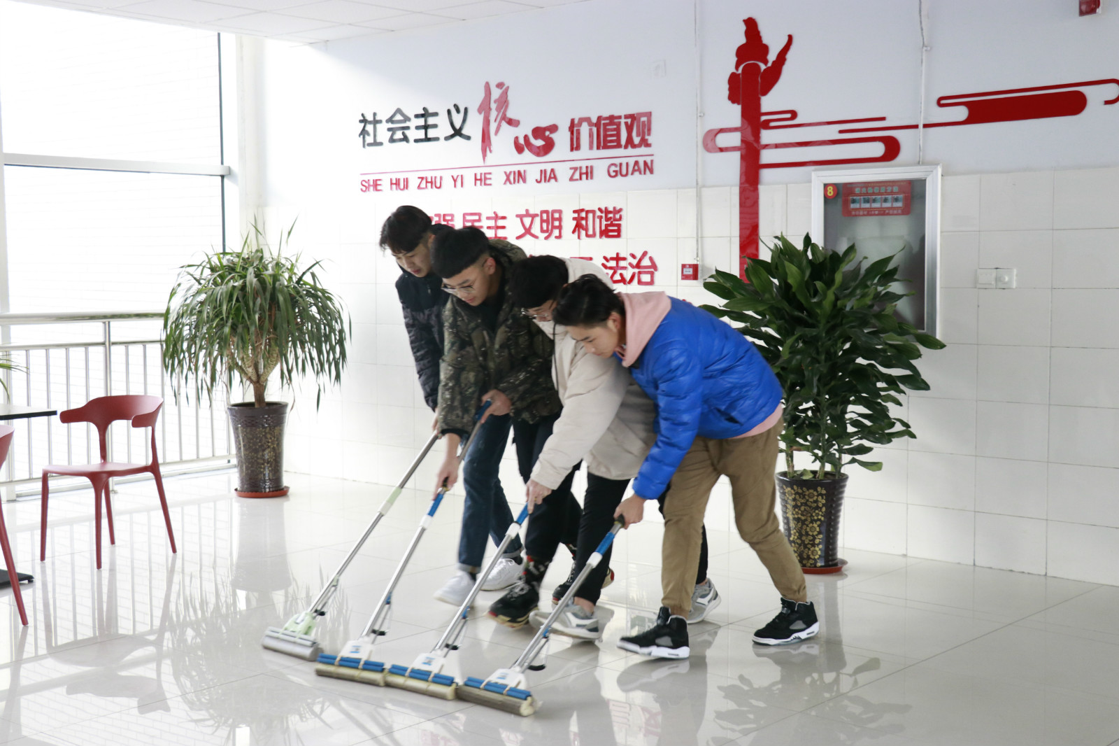信息工程学院利用课外活动和周末时间,开展了教室粉刷、笔记本教室改造、教学楼环境大扫除和教室文化DIY设计等活动。在教室粉刷活动中,各班级对陈旧的教室文化建设痕迹进行了彻底清理,同学们细心地把墙壁上的纸片、胶带都清理干净,随后,自己动手进行了教室粉刷,虽然大家都没有做过这样专业的技术活,但同学们戴上自制的小纸帽,一个个做起了“粉刷匠”还是有模有样的,同学们从紧张、担心自己刷不好,开始试探,很快就从生手变成了熟练工,经过几个小时的努力,教室被粉刷得焕然一新。在笔记本教室改造活动中,信息工程学院明确教室改造目标,购置准备了电线、插座、线槽等材料,专业课老师带领同学们带上实训课用的实训工具,走进教室进行设计布线图纸、剪线槽、固定线槽、走线等,原本需要通过项目招标完成的7个教室的改造升级任务,广大师生以自己的专业知识和劳动,短短一周就顺利完成了。教学楼环境大扫除活动中,同学们明确分工,积极合作,不怕脏、不怕累,干得热火朝天,全面清理了教室内卫生死角,擦拭了楼道墙壁、玻璃、楼梯扶手等,经过大家的努力,教学楼环境被整理的洁净、清新、优美。另外,信息工程学院近期正在组织学生开展教室文化DIY设计活动,在老师和学生会宣传部指导下,各班级宣传骨干自行设计本班的教室文化墙,同学们的作品创意新颖,有些同学学以致用,利用所学专业知识能够顺利完成制作设计,一些未开设相关课程的同学通过及时学习请教,既完成了教室文化设计,又多学习掌握了一门专业课程。