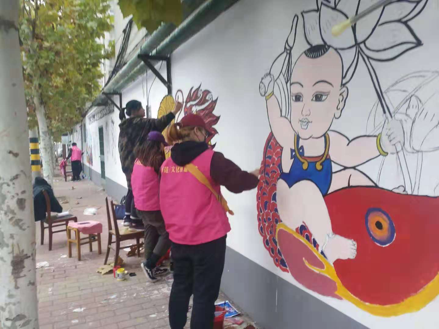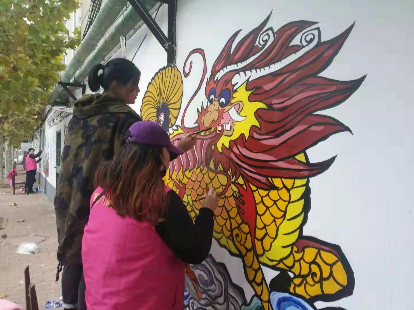 在绘制过程中,引来诸多社会各阶层的群众驻足观看,为社区居民送上了一份丰盛的视觉文化艺术大餐,以实际行动践行了“振兴美丽乡村、打造宜人社区”的宏伟目标,赢得各级领导和群众的好评!(王乃田供稿)