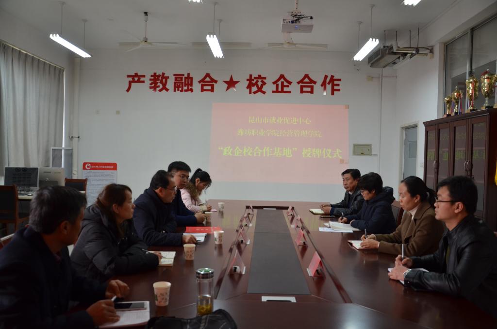 11月21日,江苏省昆山市就业促进中心领导及部分企业人力资源负责人到经营管理学院就学生实习实训、毕业生就业等校企合作相关事宜进行洽谈交流。经营管理学院主要负责人及相关老师加了洽谈会。