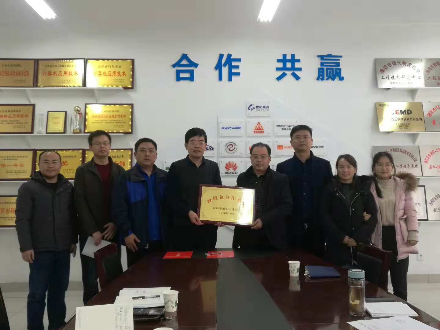 信息工程学院负责人代表学院接受了昆山市就业促进中心政校企合作基地授牌,并与昆山市就业促进中心副主任景林男代表双方签署人力资源开发合作协议。