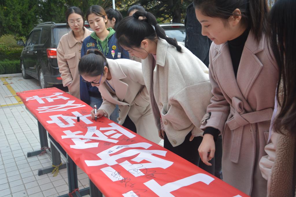 最后,参加启动仪式的全体师生在“我为优质校添光彩”校园文明在行动活动条幅上签字用他们的名字去实践他们的诺言。