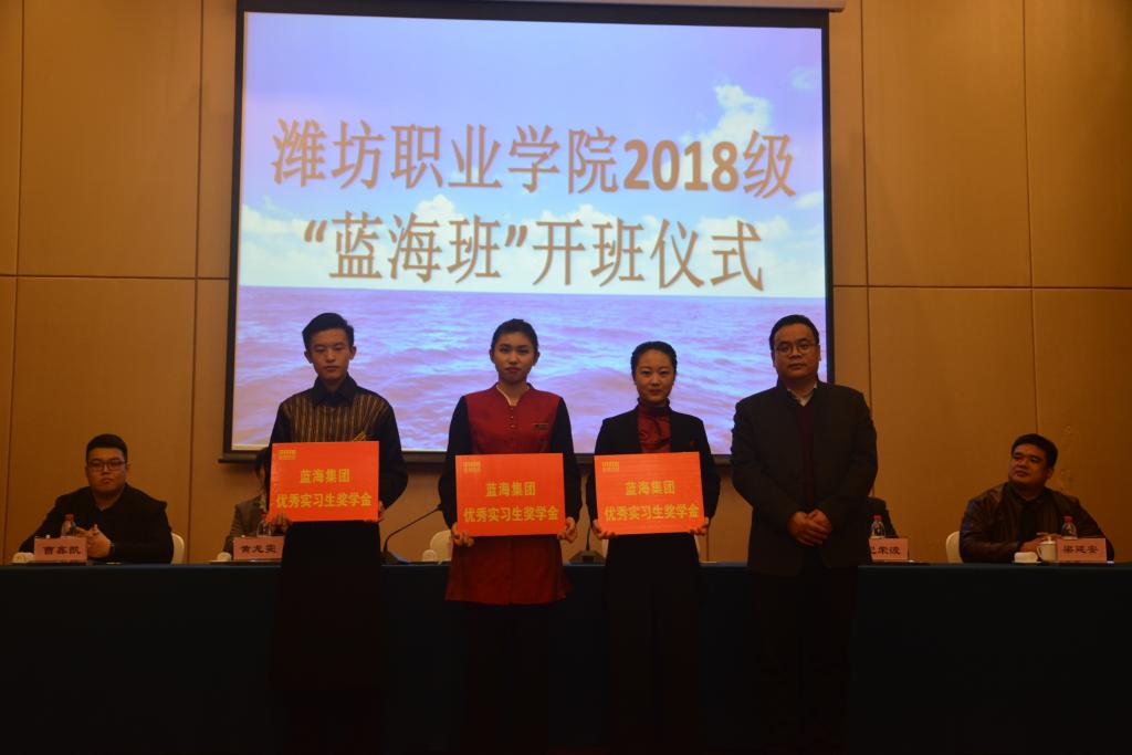 11月15日下午2点半,国际商务学院与山东蓝海酒店集团合作共建的2018级企业订单班“蓝海精英班”开班仪式在潍坊蓝海大饭店举行。山东蓝海酒店集团人力资源部副总监杨兆永、潍坊蓝海大饭店总经理纪荣波、国际商务学院学生工作和产学工作负责同志及2018级“蓝海精英班”全体同学参加本次开班仪式。
