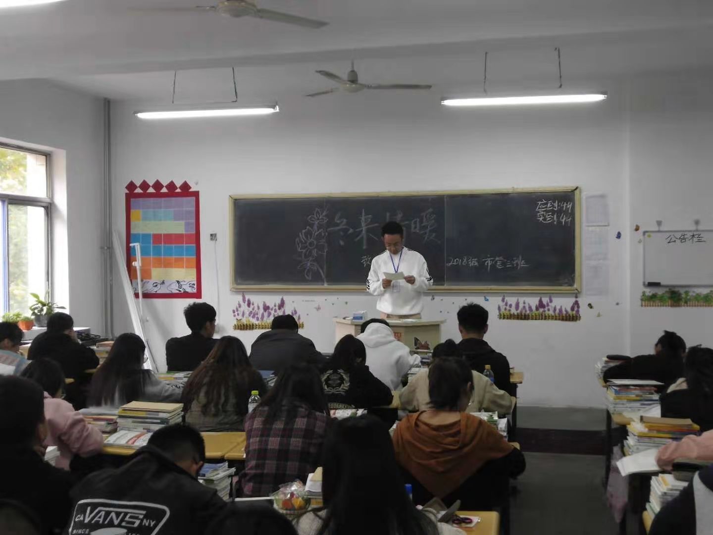 本次活动中,各班同学通过情景剧、感恩演讲、写卡片等方式围绕“情、暖”两个字来体现对父母的关怀。在此期间同学们认真倾听,主动交流,各抒己见,从话语中流露出对父母的爱。随着《父亲》配乐的响起,同学们把压在心底敢想而不敢说的话通过歌声倾诉出来,歌声化为情感聚焦在发红的眼眶。随后同学们纷纷写下“一封家书”,将平时羞于说出口的话以文字的形式表达出来,并以视频、照片的形式发给父母。最后,各班班长提议利用课下时间给父母拨通电话,在这寒冷的天气里给他们带来温暖,让他们感受儿女的成长。
