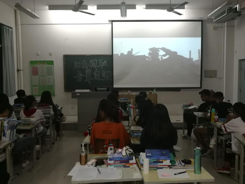 为加深对“九一八”的了解,使大家更清楚的记住“九一八事变”中祖国的那段苦难屈辱历史,了解日本帝国主义悍然侵略中华的史实,更重要的是由此所激起的全国人民奋勇抗战的历史,团总支组织全体同学集体观看抗日题材电影《百团大战》。很多同学都感动都震撼于中国军人的抗日情怀和为国献身的精神,那些牺牲的军人值得国人缅怀,值得我们敬重!