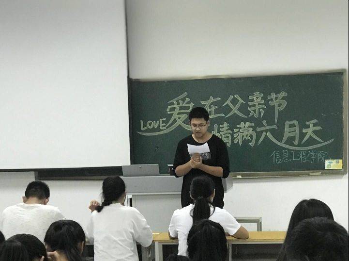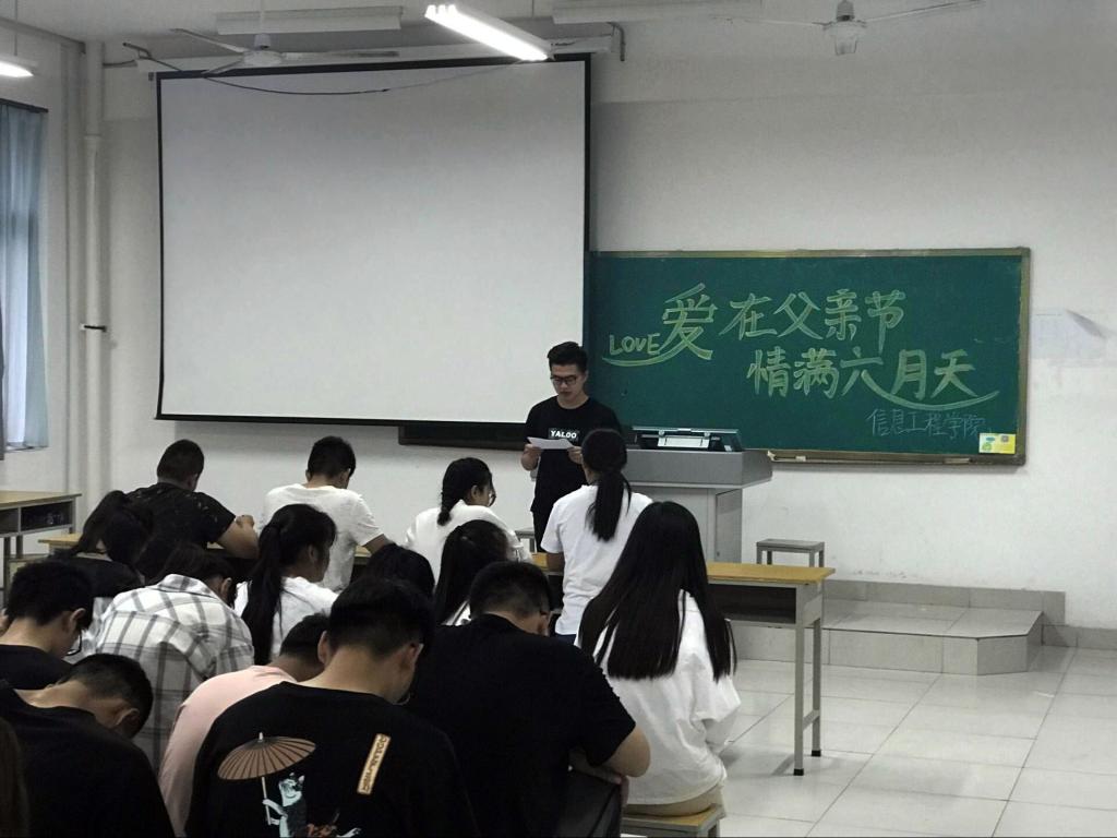 为迎接父亲节的到来,培养学生感恩意识,6月13日下午,信息工程学院在惠泽2号楼B412教室举办了以“爱在父亲节,情满六月天”为主题的朗诵比赛。