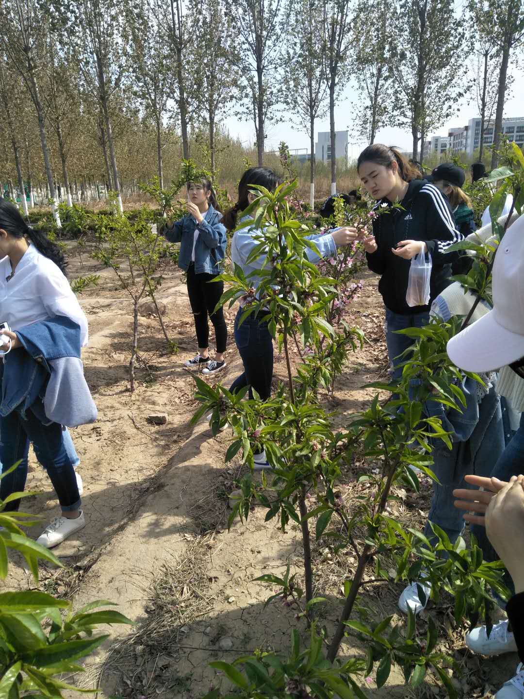 邹老师结合自己日常教学,带领导师班指导的学生,在原有实验园基础上,进行了重新规划、栽植、养护、管理,目前小果园有桃、梨、苹果、石榴共4个种,13个品种。同学们通过这个持续性的活动,把理论应用于实践,通过动手操作真正学会栽植,浇水,施肥,叶面喷药肥,除草和春季修剪等实践操作技能,在他们的精心呵护下,小果园初步形成雏形,既美化了校园又为下一步的实践教学如嫁接、夏季修剪等准备了素材。