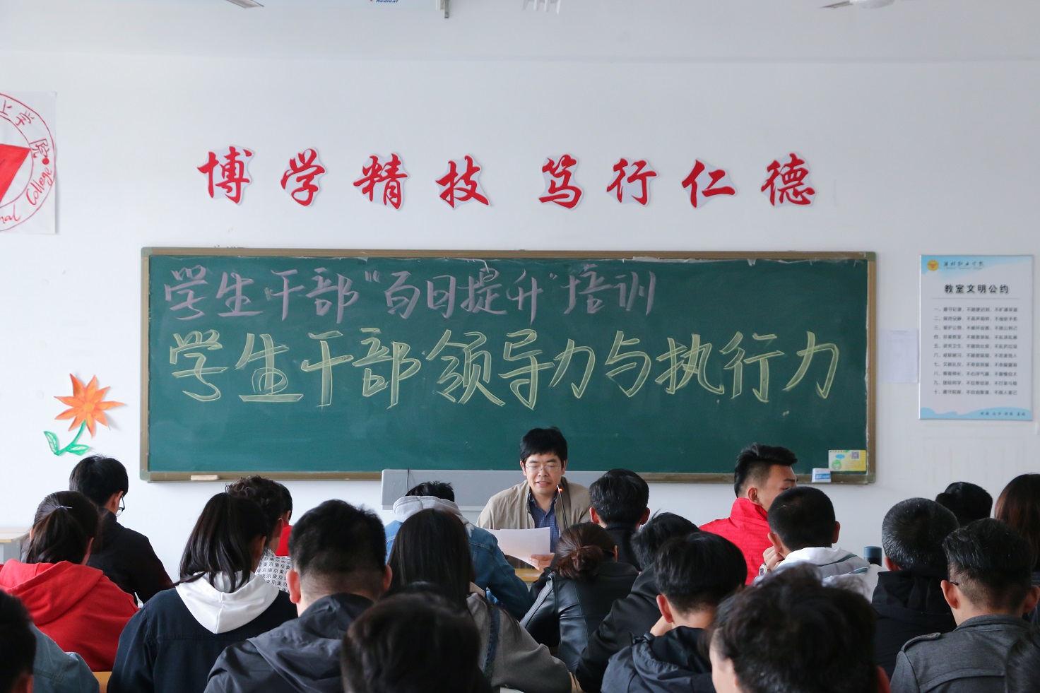 为加强学生自我管理,提高学生干部的工作能力,4月19日下午,信息工程学院在惠泽2号楼B512教室举办了学生干部领导力与执行力讲座。