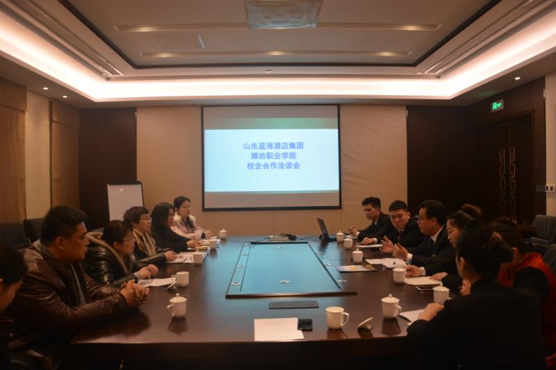 为贯彻落实国务院办公厅关于深化产教融合的若干意见精神,进一步推进产教融合,密切校企合作,2月6日上午,国际商务学院主要负责同志带领产学工作负责同志、酒店管理专业骨干教师、实习生班主任一行到山东蓝海酒店集团进行调研,酒店人力资源部杨总对我方人员进行了热情接待。