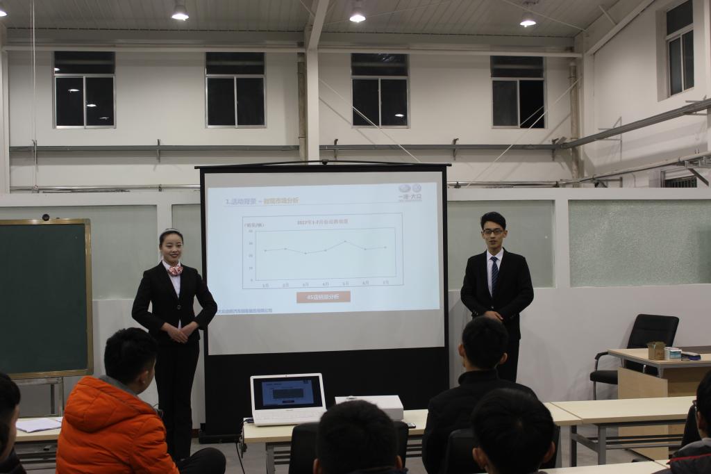 本次交流会旨在“传帮共建、共同成长”,参加2017年山东省职业院校技能大赛汽车营销赛项、2017年新能源汽车技术与维修技能竞赛和第四届山东省大学生科技创新大赛的获奖选手分别作了经验分享和作品演示。三组选手首先分别做了比赛的过程展示,展示过程中选手们精彩表现获得了同学们的阵阵掌声。随后他们又分别从参赛前的训练、参赛的流程、参赛的细节等方面做了详细的汇报交流,同学们更是被他们努力拼搏、严谨负责的态度所感染,心有感触。同学们在听完汇报之后提出了专业技能相关的问题,指导老师和参赛学生针对同学们提出的专业问题进行了解答和指导。