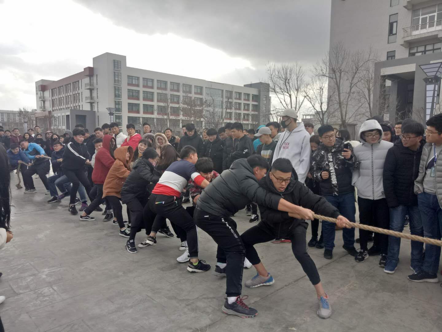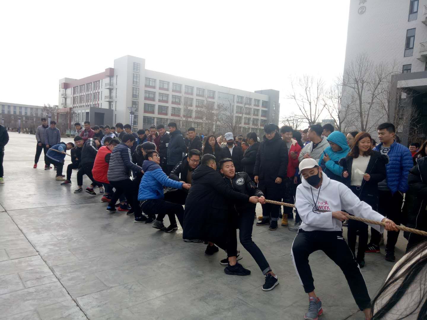 本次比赛采取三局两胜制,以班级为单位每队10男5女参赛。比赛过程中,同学们努力拼搏,团结协作。啦啦队成员个个热情高涨,为参赛选手高喊“加油”,呐喊声响彻云霄,每一声呐喊都带来一股力量。裁判员本着公平、公正、公开的原则监督本次的拔河比赛,参赛人员也恪守比赛规则,使比赛公平的进行。