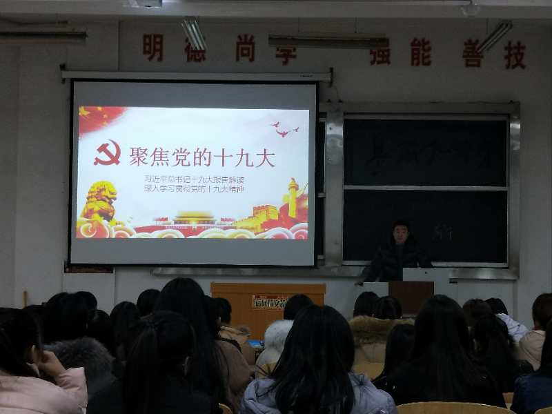 文化创意学院相关负责人和学生工作负责人担任主讲人,主要分享十九大报告的主要内容、意义和对师生发展的影响。在会上,宣讲老师指出党的十九大报告内容丰富、博大精深,与每一位师生关系密切。同时强调全体师生要充分认识党的十九大精神意义,深刻领会、准确把握党的十九大精神实质和丰富内涵。最后强调了习近平总书记在工作报告中提到的“青年兴,国家兴,青年强,国家强”,对青年一代学生寄予厚望。
