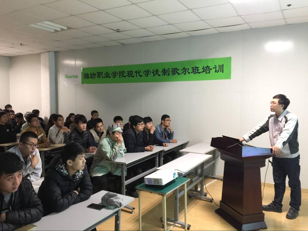 现代学徒制试点项目是beat365以省级现代学徒制试点为契机,与歌尔股份有限公司签订的战略性合作项目。今年9月18日,2016级数控技术专业44名学生在歌尔股份有限公司的培训中心举行了隆重的拜师仪式,并被媒体“直播潍坊栏目”全程报道。截止发稿目前,44名学徒均在歌尔PMF-PPM事业部注塑中心重要岗位任职,学习工作情况良好,得到企业领导一致好评。