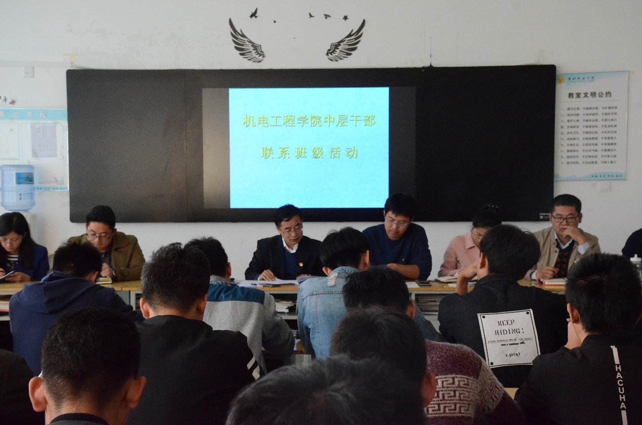 机电工程学院于11月3日下午在惠泽2A312教室召开“中层干部联系班级启动仪式”活动,该院中层干部、辅导员及相关社团负责老师参加了活动。