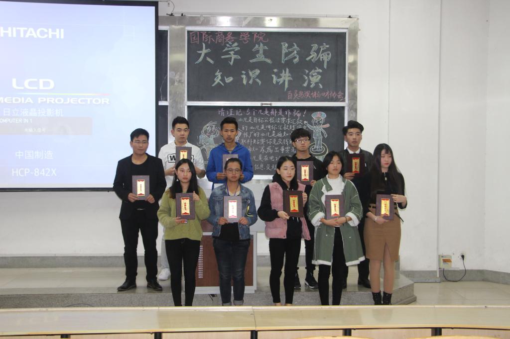 此次比赛,经过前期一个多月的筹备工作和紧张激烈的竞争选拔,共有10名选手脱颖而出参加到最终的角逐。参赛选手通过PPT以案说法、以情动人、以理服人,图文并茂的形式对各类诈骗犯罪进行全方位的剖析,以大学生的独特视角,提出了防范诈骗尤其是防范校园诈骗的对策和建议。整个讲演过程中,重点讲述了学生日常生活安全意识的养成,提醒同学们在思想上要时时讲安全,事事重安全。在生活中不能对安全掉以轻心,不能麻痹大意,要让安全警钟长鸣;行动上要防盗、防骗、防溺水、防人身伤害、防交通事故、防火等。选手不时与观众互动,现场高潮迭起、掌声雷动。最后,经评委现场打分,决出一等奖2名、二等奖3名、三等奖5名,活动取得圆满成功。