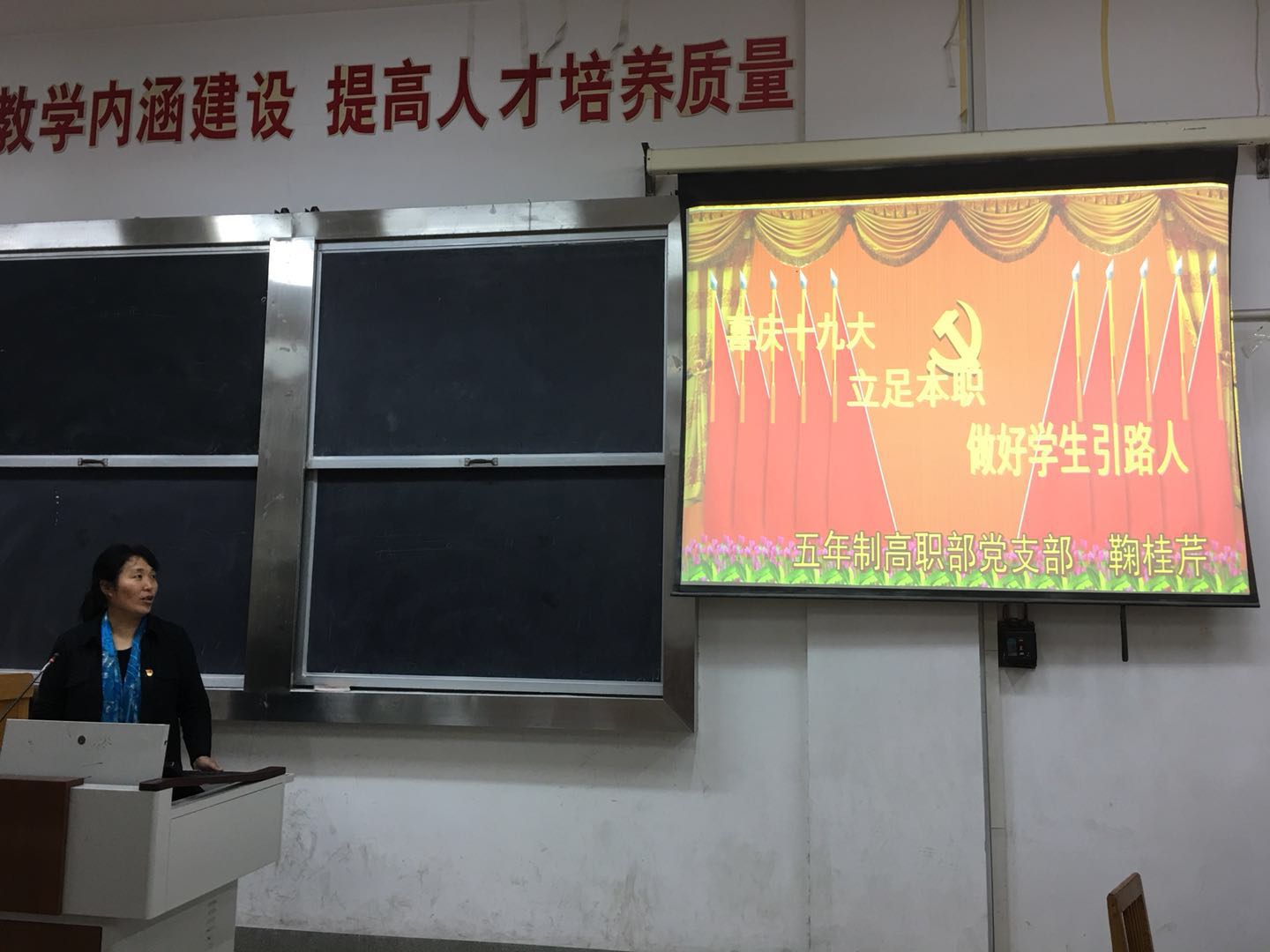 五年高职部举行“喜庆十九大,立足本职,做好学生的引路人”党课