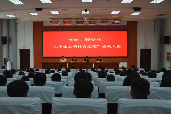 为了加强学生思想道德和文明礼仪教育,营造文明、和谐、积极向上的校园文化氛围,9月14日下午,信息工程学院在清泽楼报告厅举行了“大学生文明修身工程”启动大会。