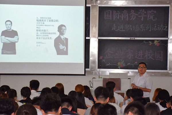 5月22日,国际商务学院举办“走进职场”活动第三期讲座。讲座邀请青岛蓝色互联网学院运营部总经理韩明先生以及副总经理李桂刚先生担任主讲,蓝色互联网学院相关人员、国际商务学院师生参加。