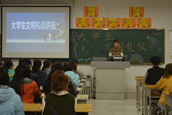 4月10日,经营管理学院举行“明德讲堂”大学生文明礼仪专题讲座。该院全体学生干部及学生代表参加了讲座。讲座由山东省十佳辅导员、学院礼仪社团指导教师李雪琳主讲。