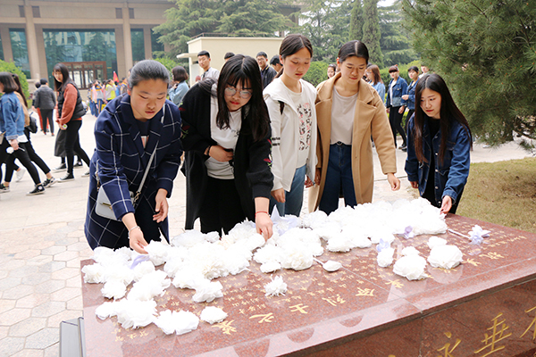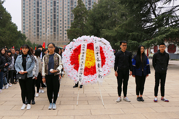 五年制高职部党支部负责同志和师生代表200余人,怀着无比崇敬的心情来到潍坊烈士陵园。在烈士纪念碑墓前,全体师生手捧自制白色小花,整齐列队,由学生代表向革命烈士纪念碑敬献了花圈,并一起高唱国歌。讲解员为师生们讲解了革命先烈们为中国革命的胜利抛头颅、洒热血的英勇事迹。在哀乐低回中,全体师生向革命烈士默哀,参加祭扫的师生怀着无比崇敬的心情瞻仰了烈士墓,把白花放到烈士墓前,以表达哀思之情。