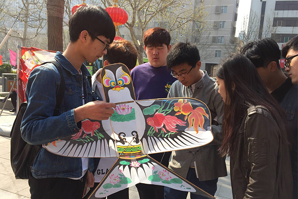 为迎接第33届潍坊国际风筝会的到来,配合学院第三届“放飞理想”风筝放飞比赛活动的顺利开展,4月5日,师范/文化创意学院师生一行来到潍坊市十笏园文化街区,向潍坊风筝传承人韩福龄先生的入室弟子李进浩老师学习扎制传统“城派风筝”。