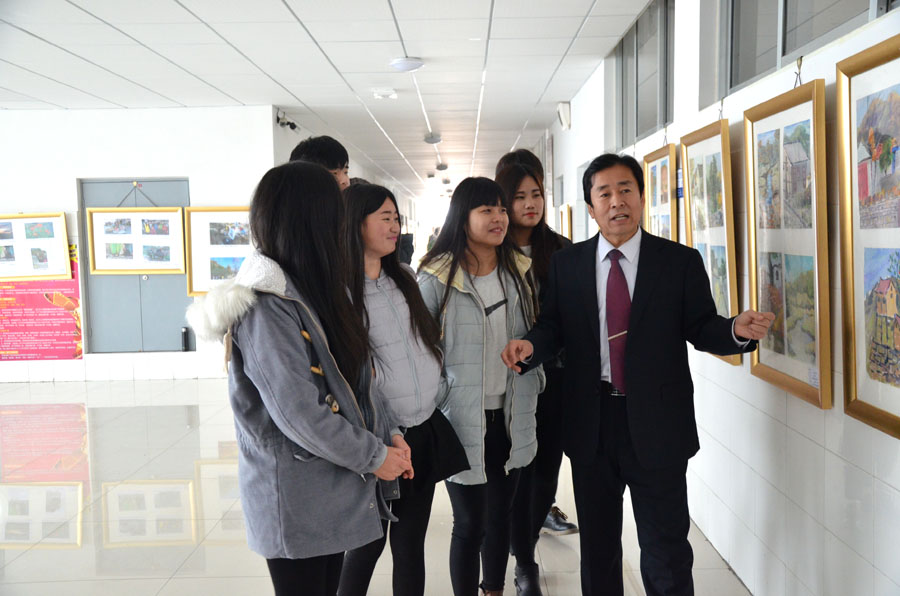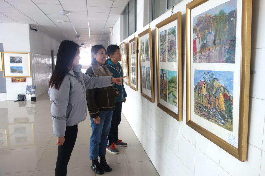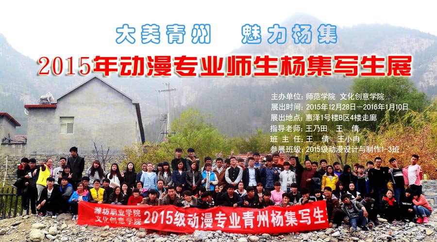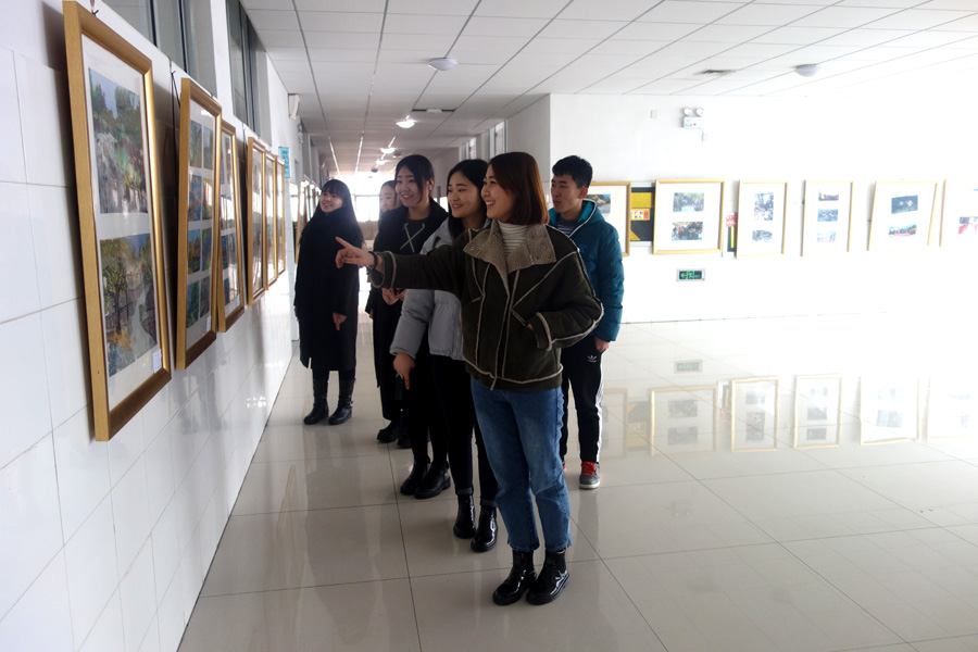 12月28日,在滨海校区惠泽教学楼B区一号四楼走廊,师范/文化创意学院2015级动漫设计与制作专业百名师生青州杨集美术写生作品展览隆重开展,吸引了广大师生纷纷驻足参观,赢得了一片叫好和点赞。