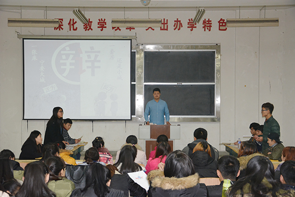 12月14日,国际商务学院“百灵鸟”演讲与口才协会举行“辩出口才,辩出自我”辩论赛。此活动是第十届社团文化艺术节系列活动之一,由“百灵鸟”演讲与口才协会承办,评委由国际商务学院的老师担任。