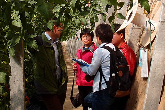 水肥一体化技术在寿光温室蔬菜生产中正处在推广初期,菜农对该技术的掌握有些欠缺,番茄产量不够理想。而当前正值温室番茄产量形成的关键时期,是番茄营养管理的重要节点。团队老师认真查看番茄植株长势、长相,对土壤理化性状进行速测,仔细询问了番茄基肥及前期追肥情况,针对番茄盛果期对营养的需求特点,老师们为菜农制定了番茄盛果期肥料施用合理化方案。(王思萍供稿)