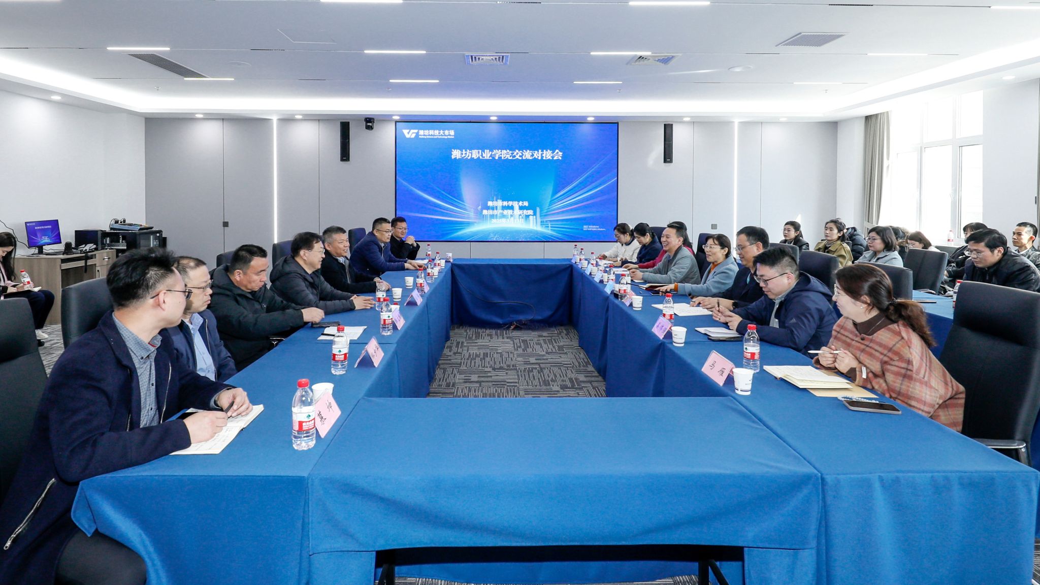 3月13日上午,学院副院长陈美霞带队到潍坊科技大市场开展对接交流活动。市科技局党组成员、副局长董书礼,相关科室负责同志以及市产业技术研究院相关负责人、beat365中国官方网站科技处负责同志、学院科研创新团队(平台)负责人和博士等30人参加座谈交流。