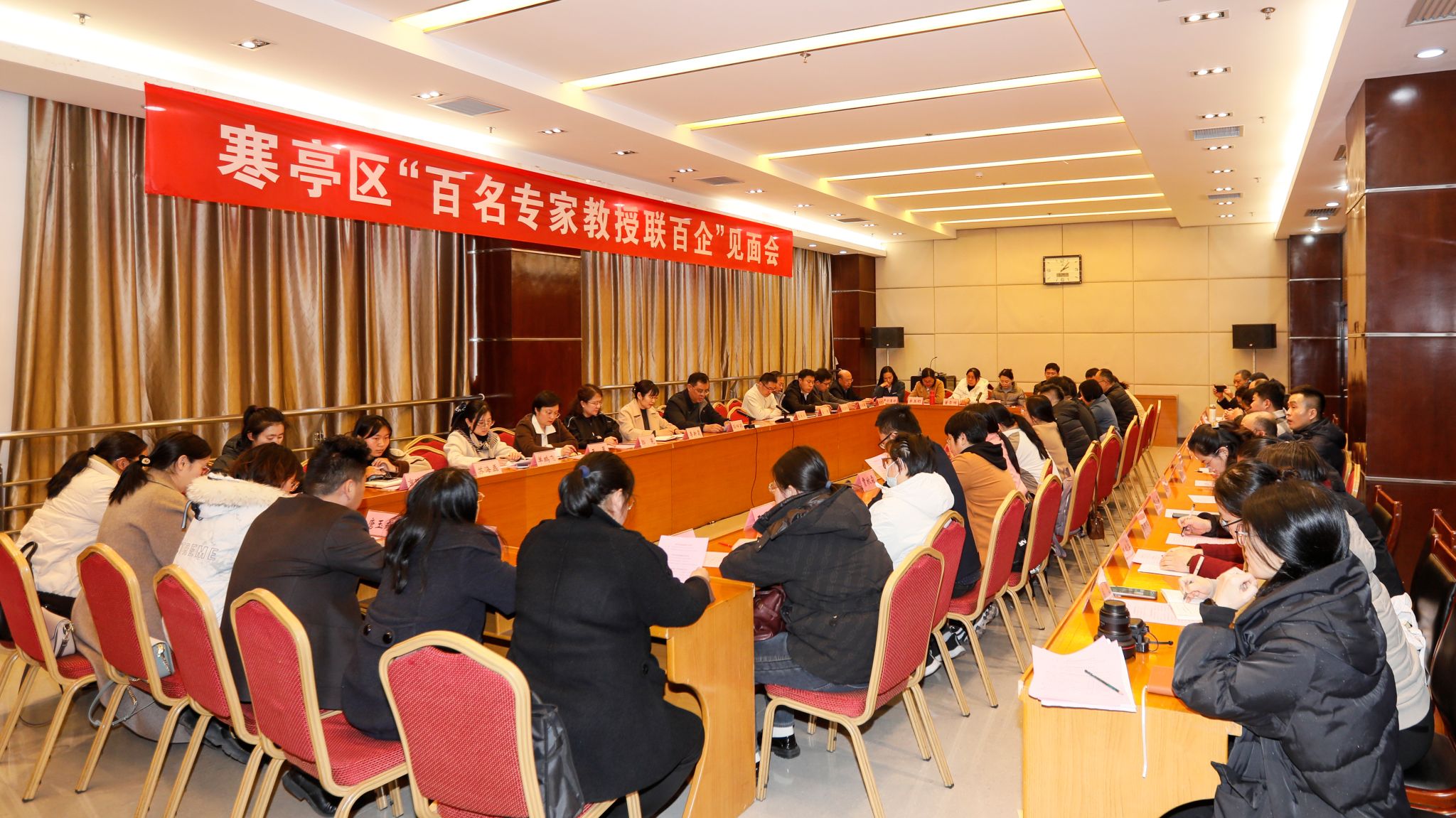 为进一步推进学院2025年“百名专家进企业”活动走深走实,3月27日下午,学院高层次人才与寒亭区部分头部、骨干企业“百名专家教授联百企”校企双向对接交流会在寒亭金融大厦举行。寒亭区委统战部副部长、区民宗局局长刘荣君,区委统战部副部长、区侨办主任李新霞,市委统战部相关科室负责人,学院科技处(产学研合作中心)负责人,农林科技学院、化学工程学院、机电工程学院、食品药品学院、汽车工程学院、经营管理学院的博士教授、寒亭区企业家代表等70余人参加了对接交流会议。